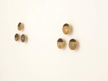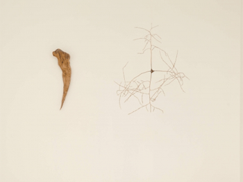 La muestra de Elvira González recuerda cómo a fines de los setenta Roger Ackling, fallecido el año pasado, comenzó a encontrar madera que encontraba en sus paseos para quemarla utilizando la luz del sol y una lente que tostaba esa madera dando lugar a un dibujo.