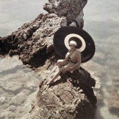 Algunas de ellas se fechan entre 1912 y 1927: se trata de treinta autocromos de los ochenta y siete que Lartigue hizo desde el entusiasmo de su primera juventud y fascinado por las nuevas técnicas fotográficas. El francés experimentó en estas piezas con el citado proceso autocromo, técnica recientemente difundida a raíz del trabajo de los hermanos Lumiére. Las imágenes aparecen en placas de vidrio y en ellas destaca el intento de Lartigue por atrapar el color y el movimiento, y en el camino lo escurridizo de la vida. Lo engorroso y lento de este procedimiento le llevó a abandonarlo, y también a dejar de lado el color, hasta 1949, porque las placas autocromas, que se basaban en la síntesis aditiva, fueron el único mecanismo disponible para elaborar fotografía que no fuera en blanco y negro hasta los años treinta.
