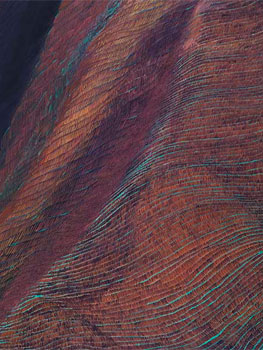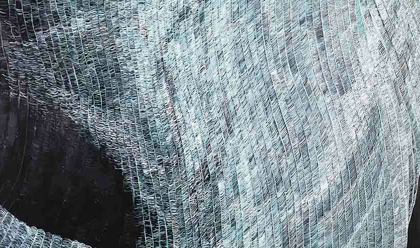 Componen “Nuevas lejanías”, que así se llama la exposición abierta en la sala Fernández-Braso, pinturas que, como es habitual en la producción de esta artista, transitan entre la figuración y la abstracción, son fruto de un proceso de elaboración extremadamente minucioso y se basan en la repetición de pequeñas líneas hasta llegar a formar tiras ondulantes que revelan formas y colores ocultos bajo un paisaje fundido.