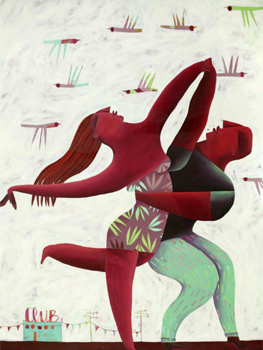 La obra de Marina Anaya continúa respirando optimismo y mostrándonos escenas felices y llenas de vida y movimiento, siempre dominadas por formas amables (las de los abrazos, las del vuelo de los pájaros), por colores vibrantes y por la plasmación de una naturaleza que parece bullir. Cobra importancia la presencia del viento, frío o cálido, representado a veces como brisa suave capaz de acariciar, otras como viento enérgico.