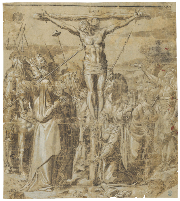 Entre esos anónimos alemanes también se ha hallado uno de los trabajos más especiales de Pedro de Campaña, en relación evidente con la Crucifixión del Museo del Louvre.