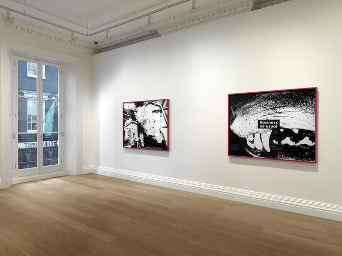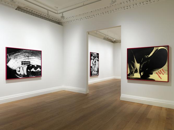 La sala Skarstedt de Londres abrió ayer “Barbara Kruger, Early Works”, un repaso por los primeros trabajos de la artista estadounidense: fotografías de gran formato en blanco y negro con provocativas leyendas sobrepuestas alusivas a la construcción cultural de las nociones de poder, identidad y sexualidad. Según la propia Kruger, estas inscripciones tratan de cuestionar la apariencia en teoría inocente, acrítica, de las imágenes a las que acompañan.