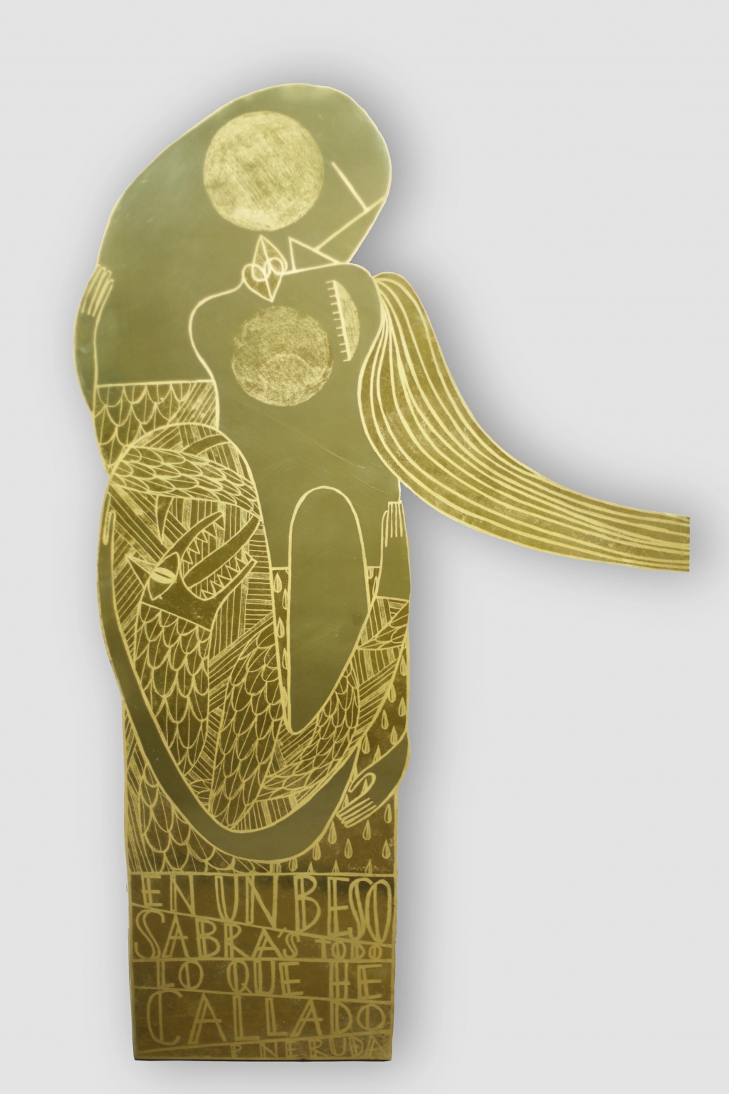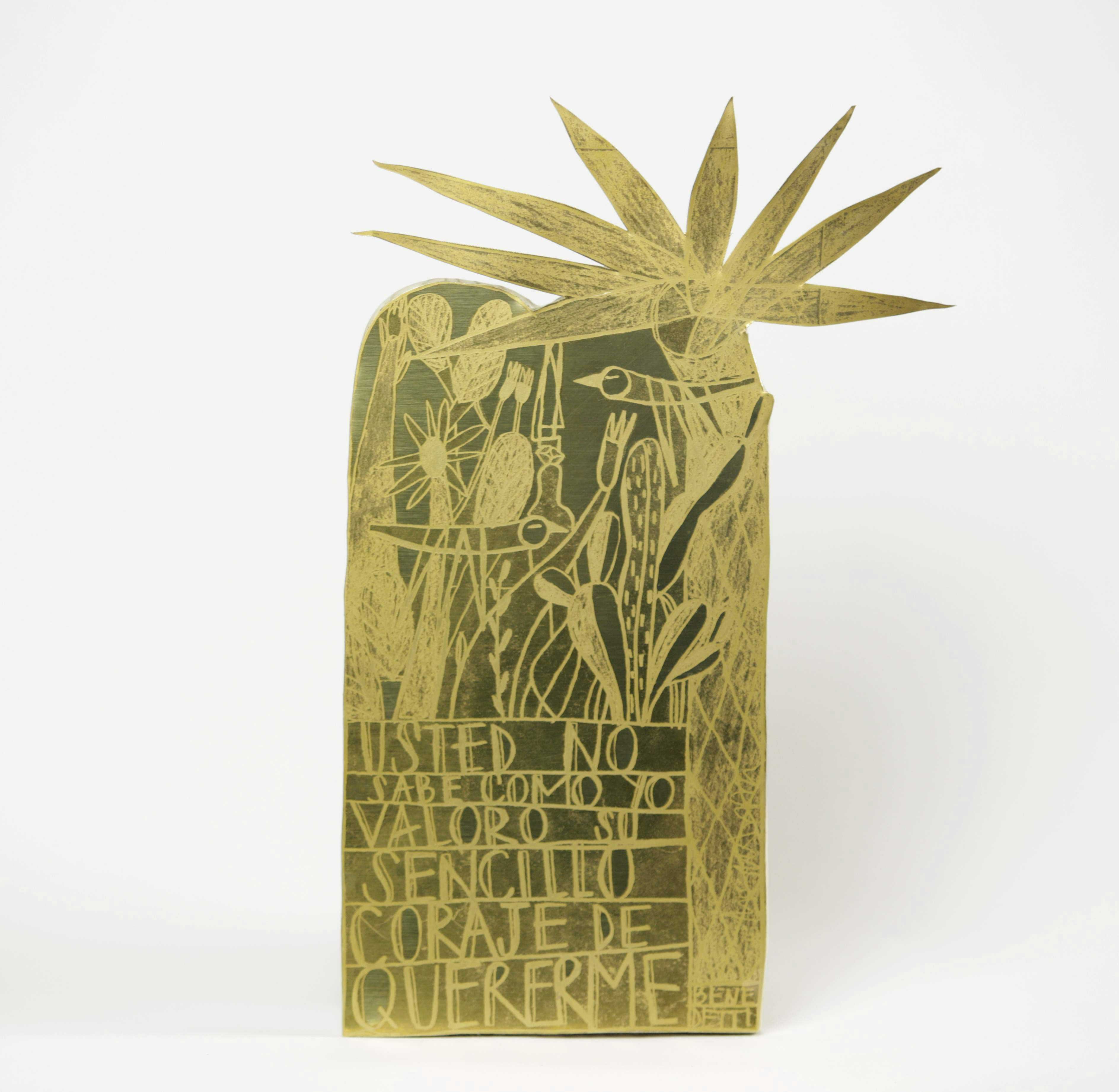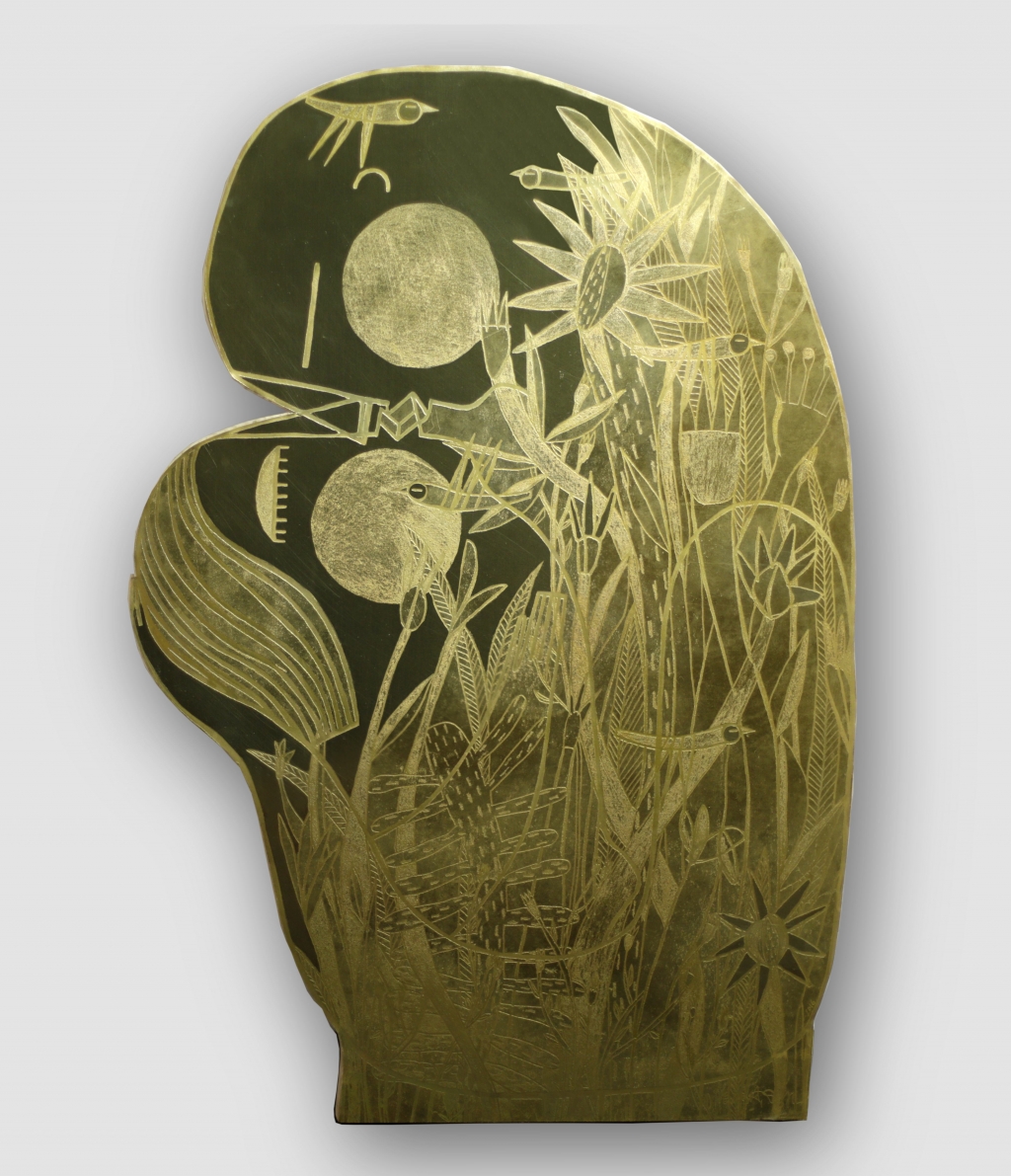 Marina Anaya regresa a partir de mañana, y hasta el 12 de marzo, a la Galería A Cuadros de Madrid para presentar sus últimos trabajos. Esta vez ha utilizado como soporte planchas de latón mordidas al ácido y recortadas creando las formas humanas habituales en sus pinturas e ilustraciones. En su interior ha desplegado exóticas representaciones naturales que conectan con el estado de ánimo de las figuras, como es habitual en esta artista, optimista y amoroso, de una felicidad sin complejos. Aquí logra transmitir la misma ebullición del resto de su producción recurriendo, no al poder expresivo del color, sino a las posibilidades del latón.