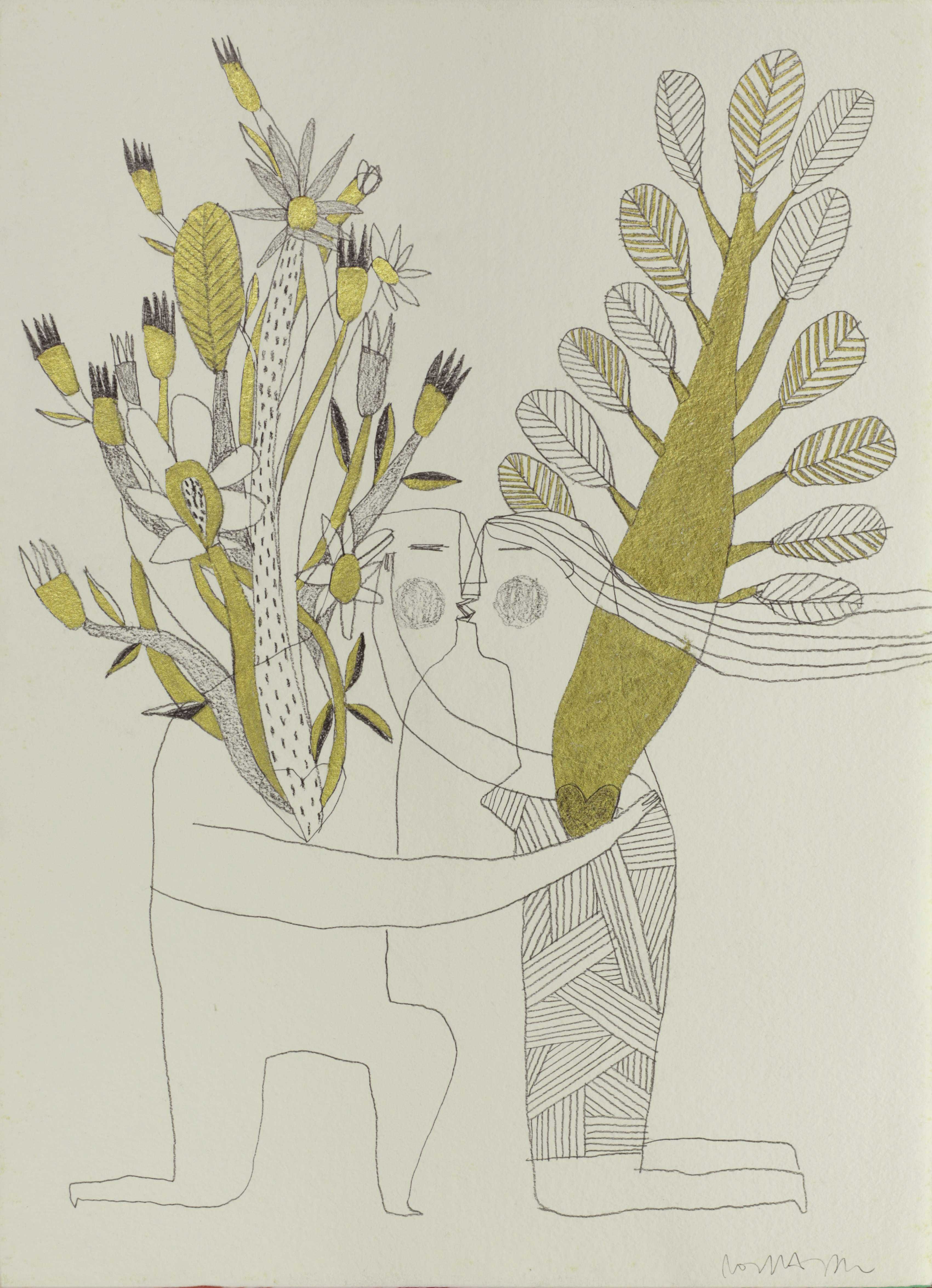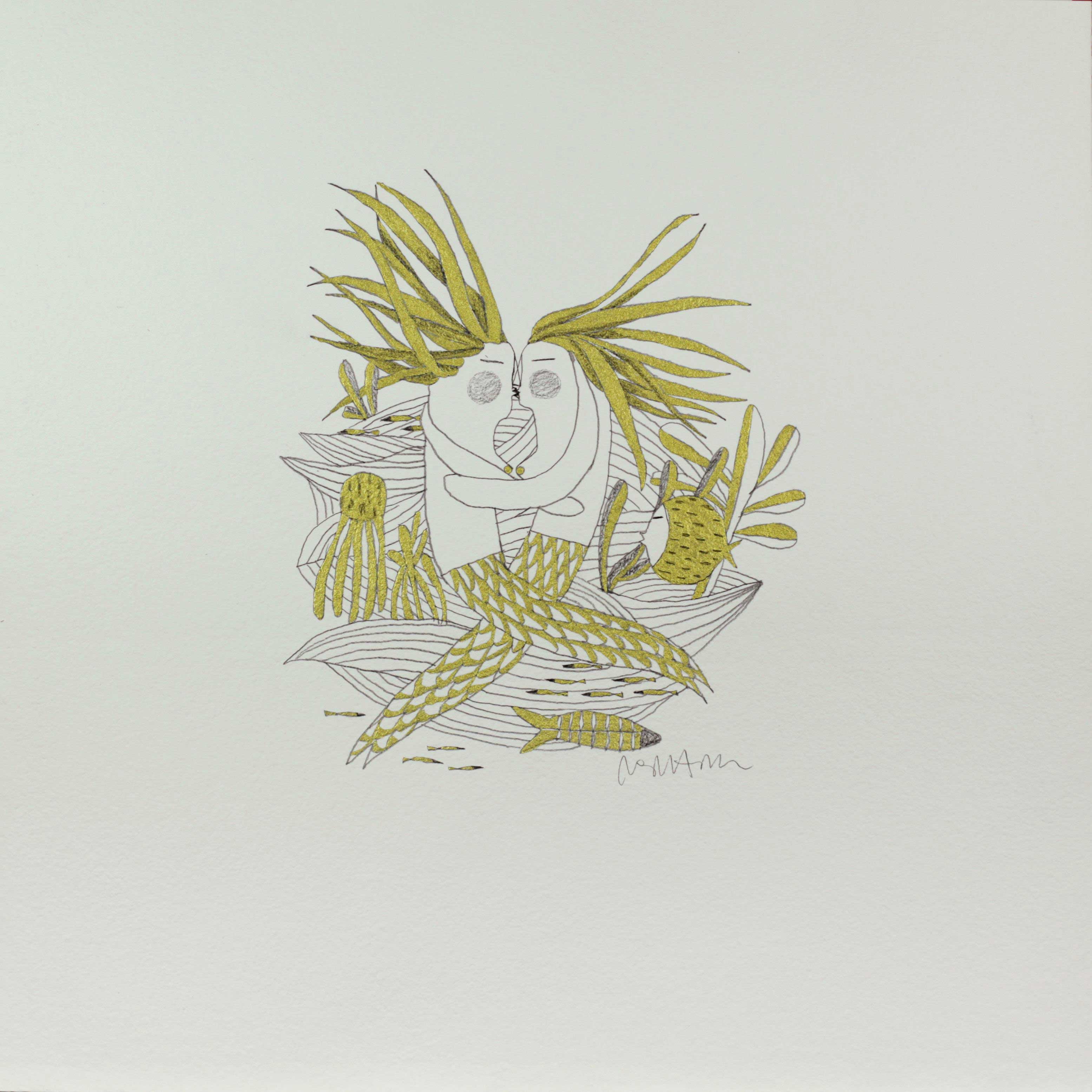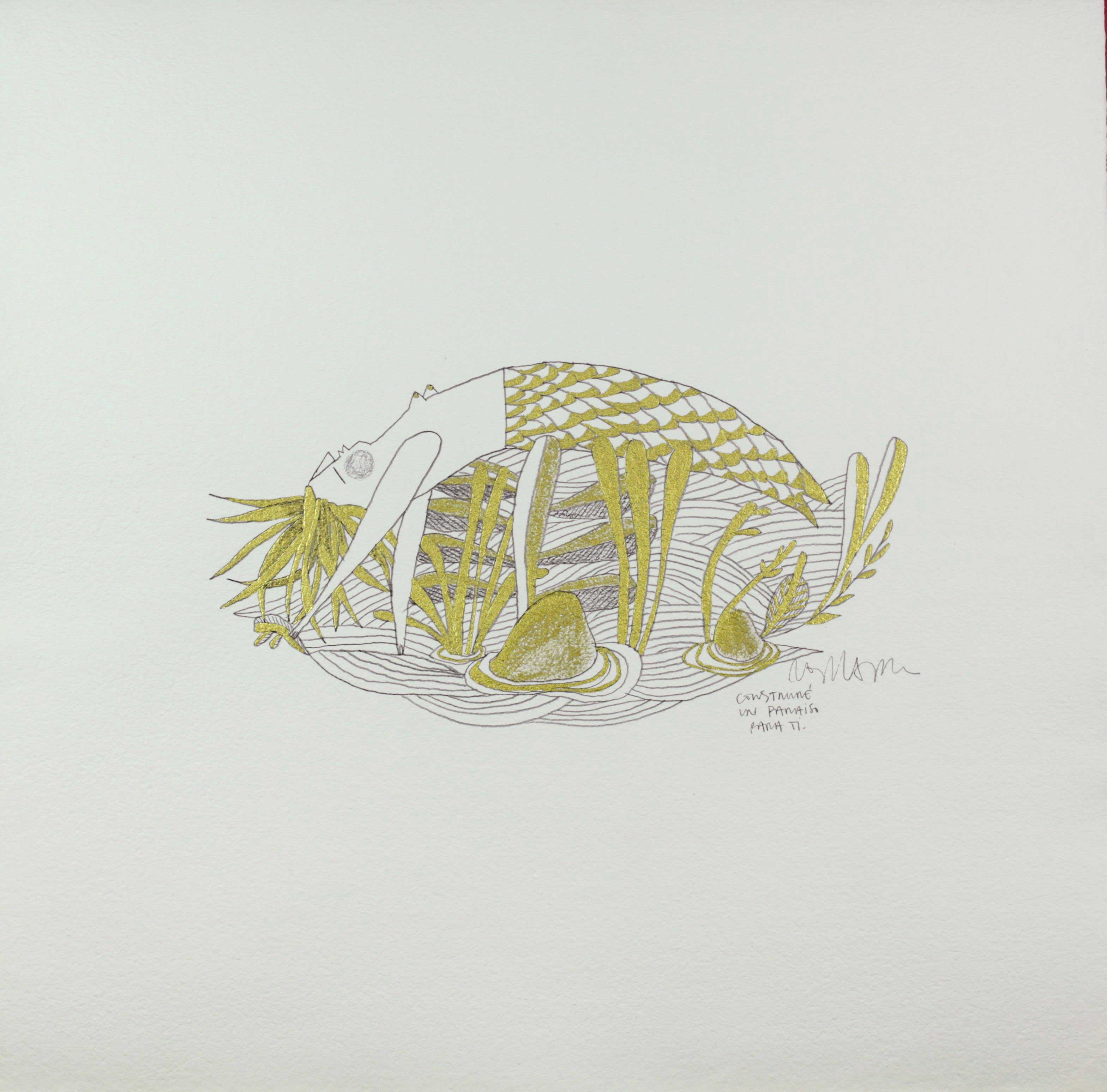 Estas piezas se acompañarán en A Cuadros de una selección de dibujos originales a lápiz y tinta dorada sobre papel artesano.