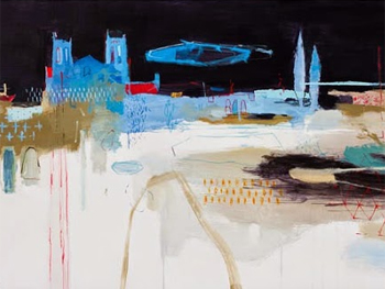 El madrileño a menudo interviene sus propias fotografías, trabajando el óleo y el citado collage sobre impresiones digitales y dejándonos ver cómo la imagen primera permanece, visible aún, en algunas zonas del lienzo, como rescoldo o huella del instante. Su pintura elimina información superflua, simplifica planos o potencia, en otras ocasiones, elementos arquitectónicos y mantiene un guiño constante hacia el diseño más actual.