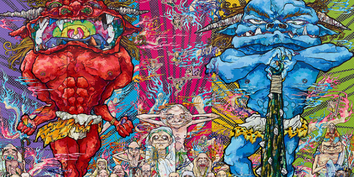 - Takashi Murakami. Red Demon and Blue Demon with 48 Arhats, 2013