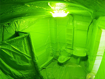 El aire tiene también su misión: actúa junto con la estructura, presionando las formas del plástico y contribuyendo a dar forma al proyecto final. Conquistados y dominados por la instalación, los escenarios escogidos se transforman a través de la nueva textura, la luz y el color, los volúmenes y los pliegues. El resultado son intervenciones absolutamente sensoriales y óptimas para ser disfrutadas por cualquier tipo de público.
