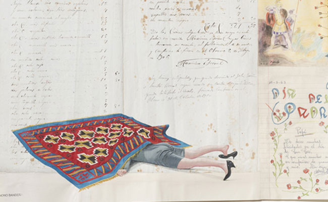 Para su séptima exposición individual en la galería madrileña Espacio Mínimo, abierta hasta el 16 de mayo, Bandera ha seleccionado catorce trabajos recientes de su serie Love Letters, que comenzó a desarrollar en 2013 y que ha venido ampliando de forma continua desde entonces. Relacionada con su anterior conjunto de óleos Patchwork, Love Letters consta de ensamblajes de cartas de amor y manuscritos antiguos que el andaluz interviene desde la ironía para subrayar las grietas de la oposición estricta entre lo sagrado y lo profano y entre la alta y la baja cultura. Así, lienzos manipulados y papeles viejos nos ofrecen, previo paso por sus manos, lecturas distintas a las originales.
