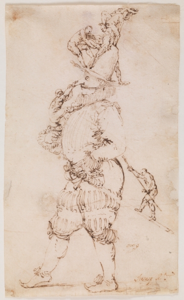 Esta obra forma parte de la muestra del Ribera dibujante que actualmente podemos visitar en el Prado y da fe de la enorme libertad, autonomía y modernidad de este artista cuando dibujaba. Sin Italia esta originalidad no habría sido posible: además de tipos y escenas reales, Il El Españoleto diseñó composiciones tan imaginativas como esta, intensamente expresivas, con cuerpos distorsionados. Como su contemporáneo Jacques Callot, Riberá dibujó personajes extravagantes: este gigante es el contrapunto a los enanos de aquel y por su indumentaria recuerda a los personajes de la Comedia del Arte.