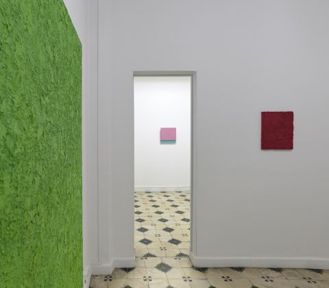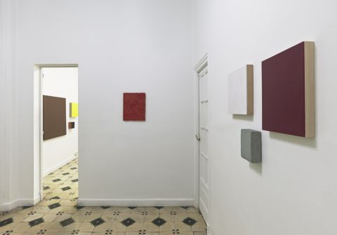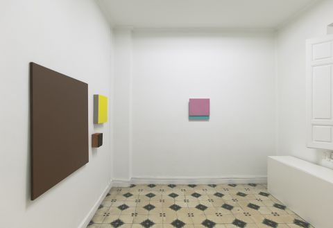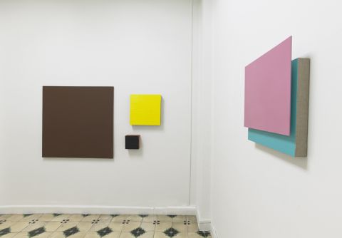 En la muestra que hasta el 28 de abril dedica a Teo Soriano la Galería ovetense Guillermina Caicoya, el montaje de la exposición y las propias salas casi íntimas de este espacio forman parte de la que podemos entender como una instalación única con la pintura expandida como protagonista, pese a la autonomía de cada obra en un sentido estricto. Colores y acabados generan relaciones con peso específico.