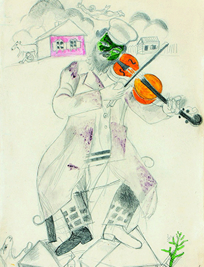 - Marc Chagall. Il violinista verde, estudio para Il teatro ebraico, 1917