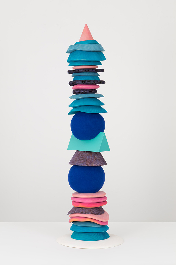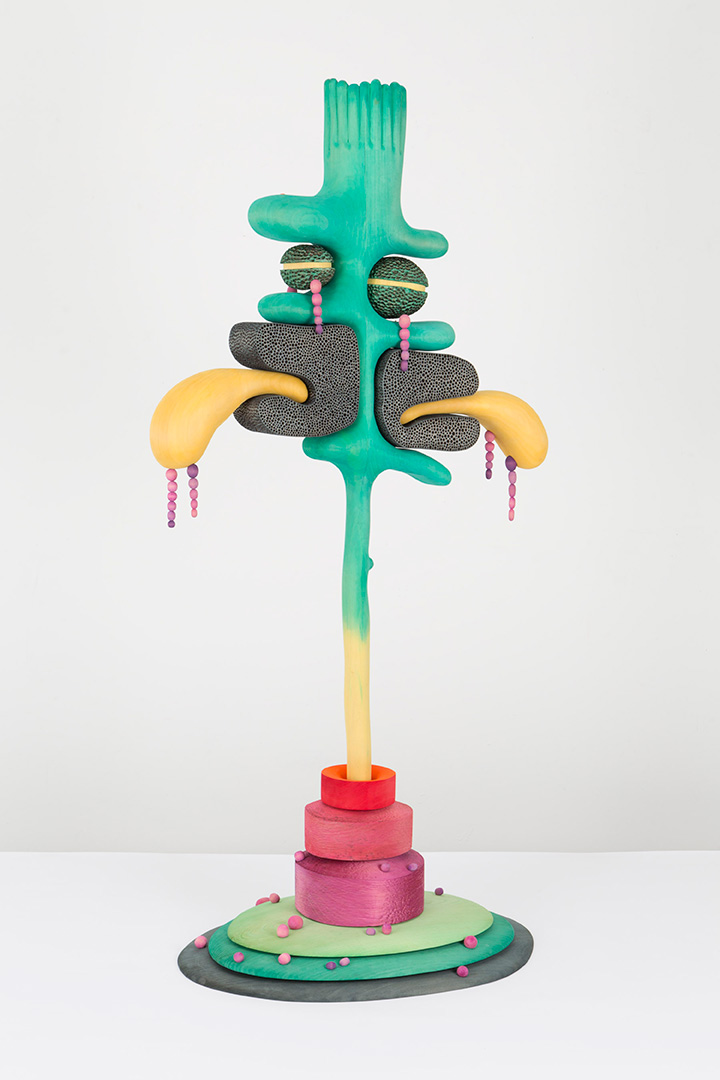 Utilizando con ingenio formas y colores, da a unas y otras obras cualidades totémicas prácticamente delirantes y evoca en ocasiones las tradiciones de hacer arte no occidentales, el folklore americano o la psicodelia.