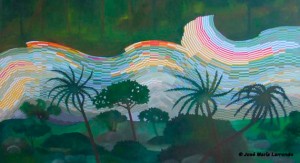 Especialmente bellos resultan su Manto de cera y coral suspendido del techo y la enredadera con flores recogidas en diversos países que origina All together now. Esta es seguramente la mayor retrospectiva dedicada en nuestro país a un artista peruano.