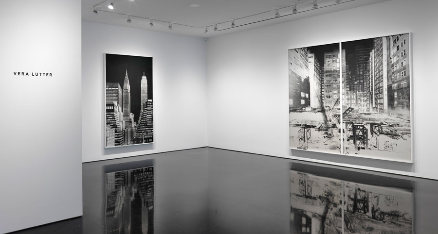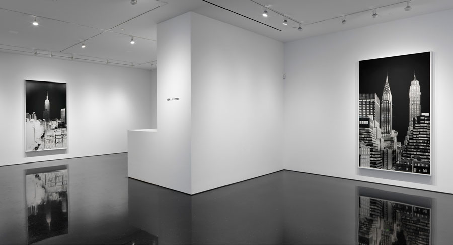 Desde su peculiar técnica, Lutter, que regresó a la fotografía a principios de los noventa precisamente con el objetivo de documentar el paisaje urbano, nos muestra el Empire State o el Chrysler Bulding, como antes hizo con las pirámides de Egipto, una mina de carbón próxima a la ciudad alemana de Hambach o los canales de Venecia.